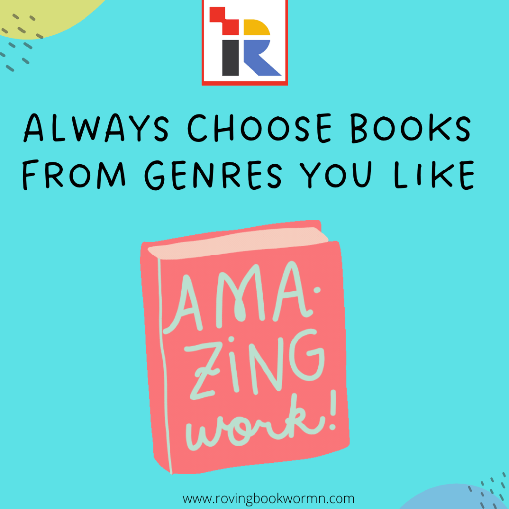 This has always worked for me. It’s easier to get bored when we try to read genres that we don’t really like but read because a particular book has been hyped and we want don’t want to feel left out. Most often than not, I have regretted this and I assure you that this is a highway ticket to getting bored while reading a book.